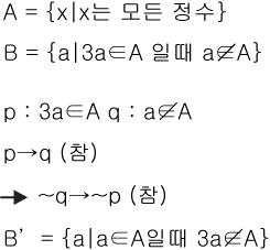 이 때 B의 대우는 3의 배수중에 3의 거듭제곱이 아닌 모든 수를 뜻합니다.