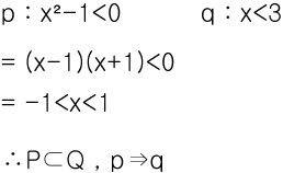 이때 몱은 0이므로 P⊂Q 이며 p⇒q