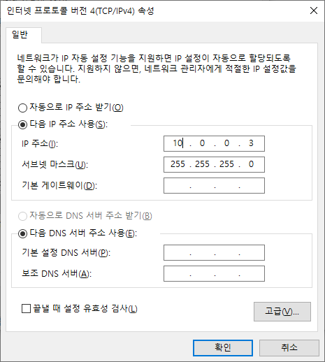 서브넷 마스크는 255.255.255.0을 지정 해야 합니다.