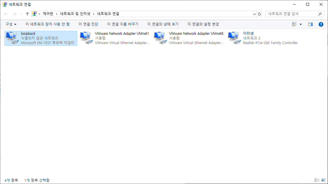 작성자는 이름을 임의로 loopback으로 변경해 놨습니다. 속성에 들어갑니다.