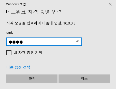 비밀번호:smbpasswd 로 설정했던 비밀번호.