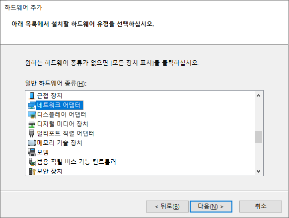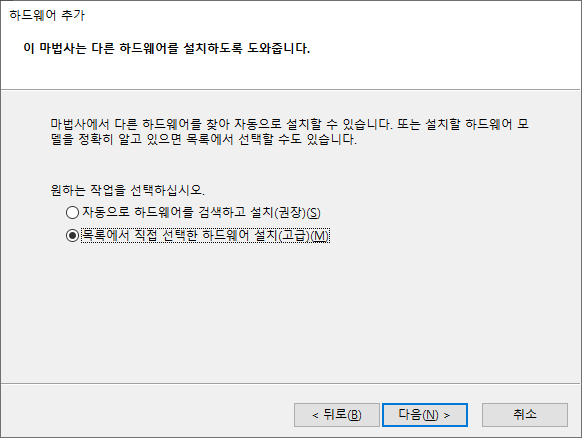 동작(A) 버튼에 있는 레거시 하드웨어 추가 버튼을 누릅니다.