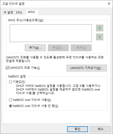 WINS 항목에서