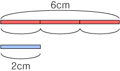 빨간 선의 길이는 2cm 의 3배인 6cm 입니다.