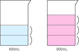 넣었다면, 큰 비커에는 몇 L + 몇 mL가 있을까요?