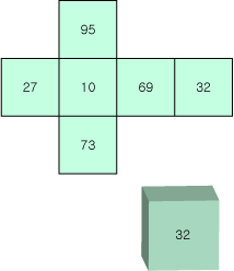 이때, 32 의 정 반대에 있는 숫자는 무엇일까요?