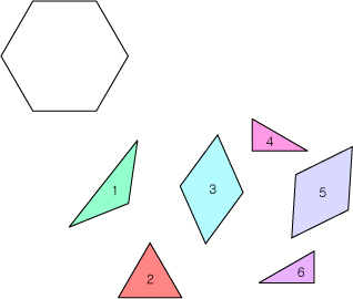 2.정육각형을 여러 조각 냈을 때 이 조각들을 맞춰서 다시 정육각형의 모양으로 만들려고합니다.