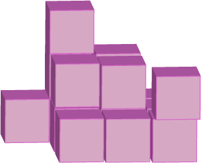 4.정육면체가 위의 그림 처럼 쌓여있다면 정육면체는 총 몇개일까요?