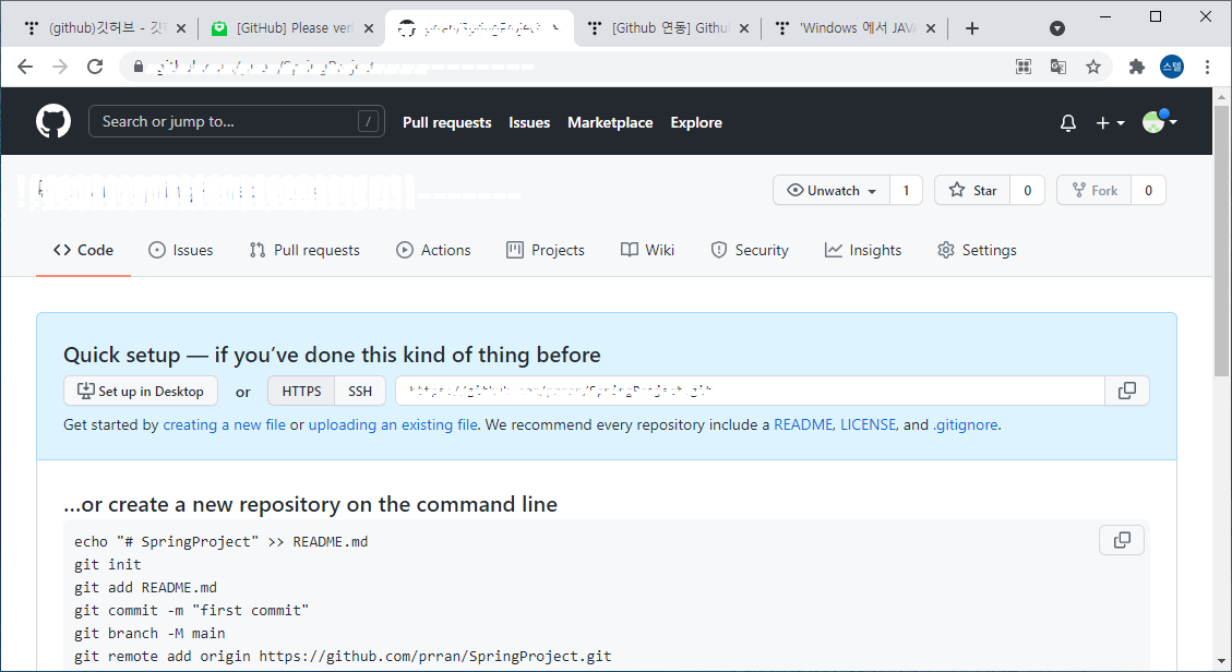 레포지토리 를 생성해줍니다.