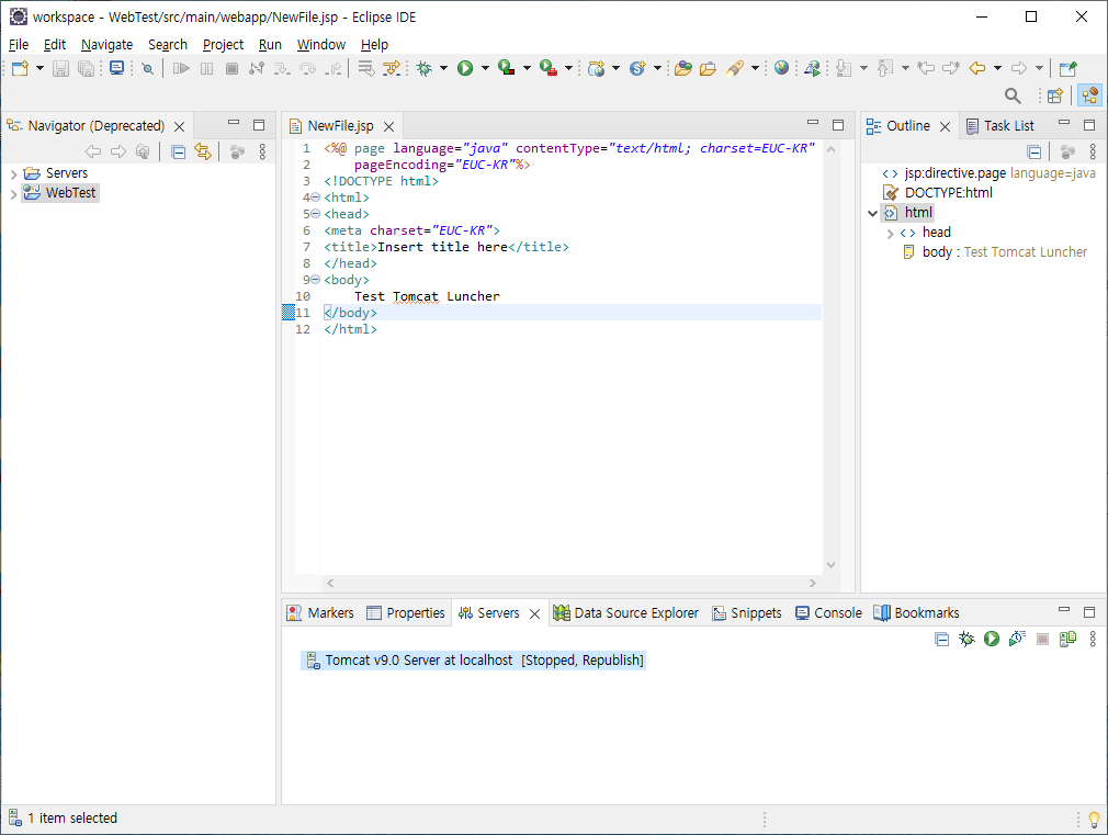 TOMCAT -> 웹 페이지의 테스트를 실행할 Localhost 서버
