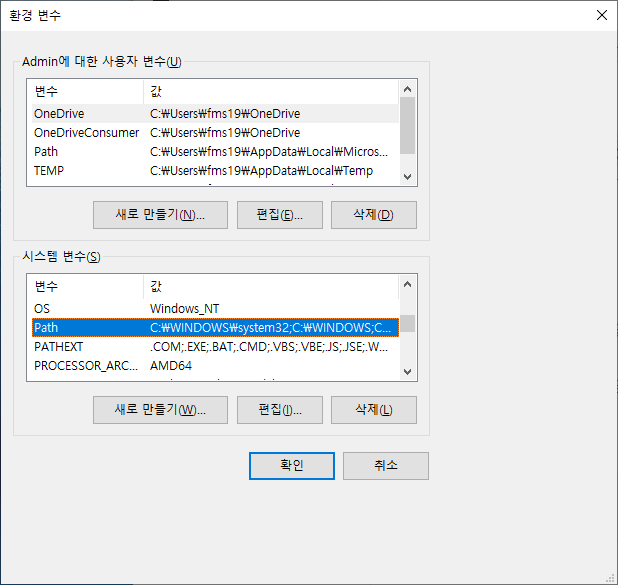 목록에서 Path 를 찾아서 편집 버튼을 누릅니다.