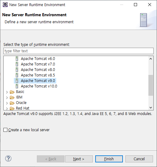 설치한 Apache Tomcat v9.0을 선택해주고 Next
