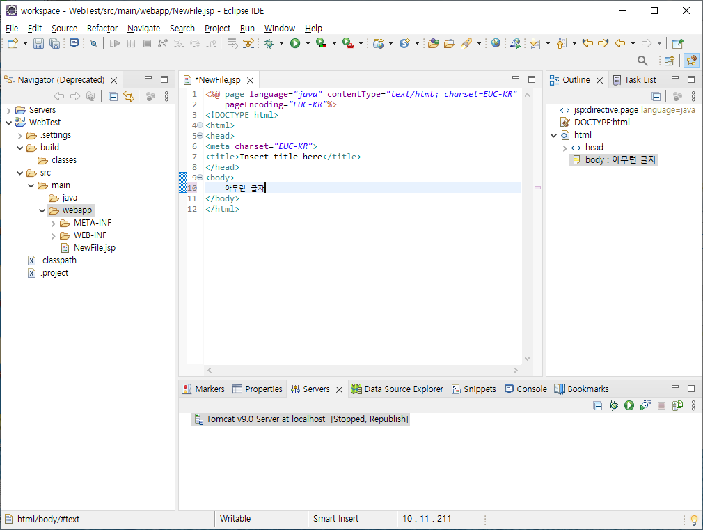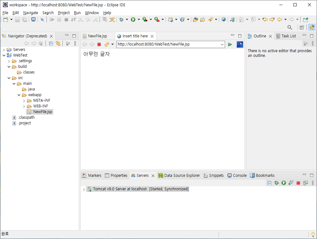 webapp에 JSP 파일을 만들어주고 (jsp 가 없을 경우 Other 버튼에 있습니다.)