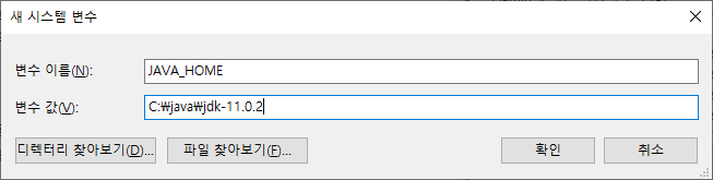 시스템 변수 측에서 새로 만들기를 3번 합니다.