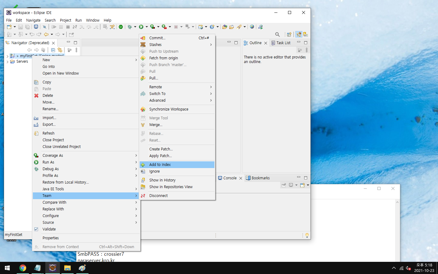 다시 Team - Add to index 를 눌러서 프로젝트 구분자를 지정해준뒤