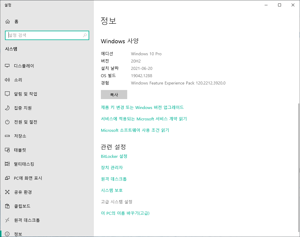 내 PC 우클릭 -> 속성