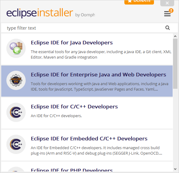 517 MB 441,497 DOWNLOADS Tools for developers working with Java and Web applications, including a Java IDE, tools for JavaScript, TypeScript, JavaServer Pages and Faces, Yaml, Markdown, Web Services, JPA and Data Tools, Maven and Gradle, Git, and more. Cli