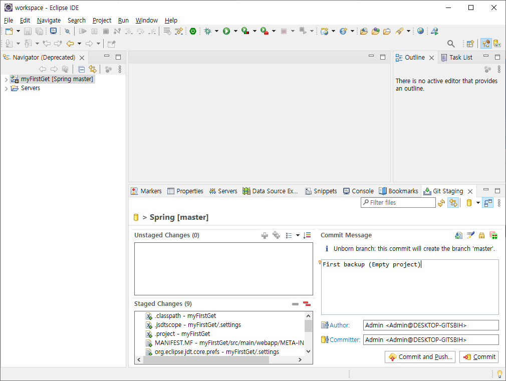 Commit and Push : 백업 폴더로 상황을 백업한 뒤, Git hub 서버에 프로젝트를 올림