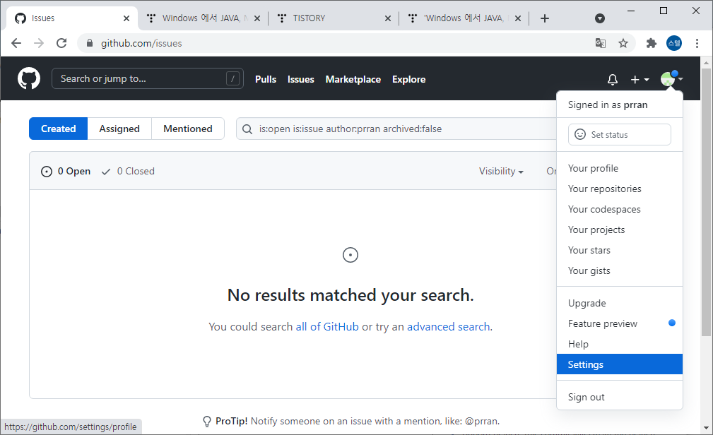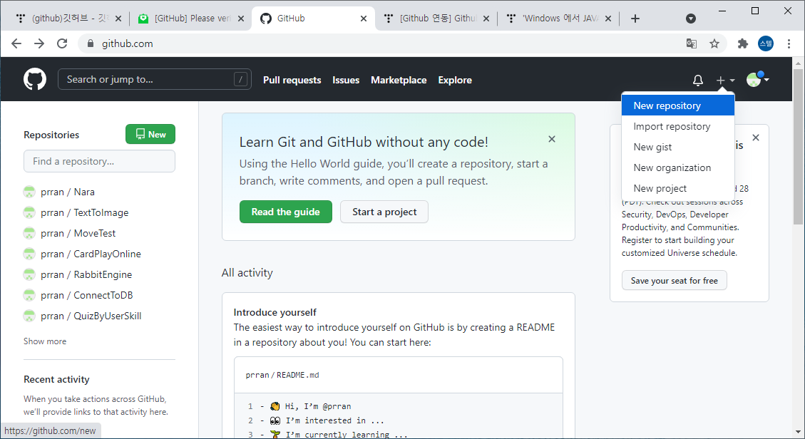 진행하기위한 전제 조건으로 먼저 Git Hub 에 가입을 완료 해야 합니다.