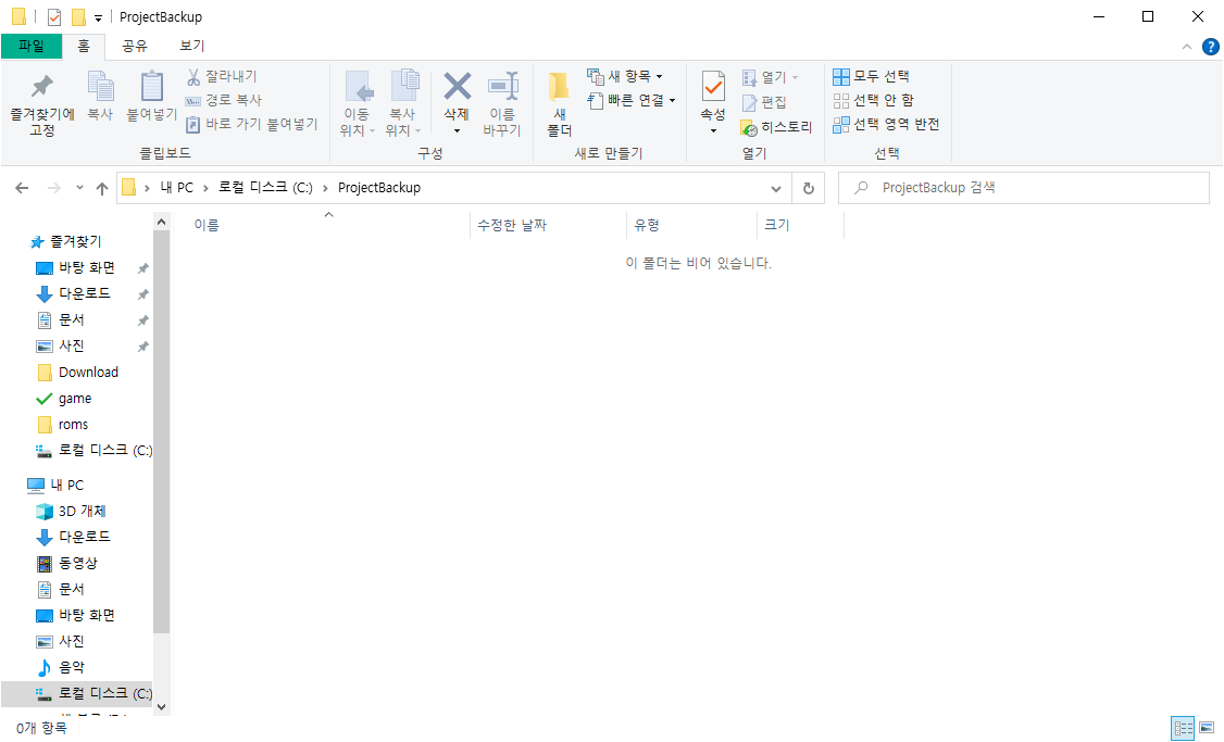 그후에 C: 드라이브 (어디든 보기 편한 장소에) 에 백업 폴더를 만든뒤,
