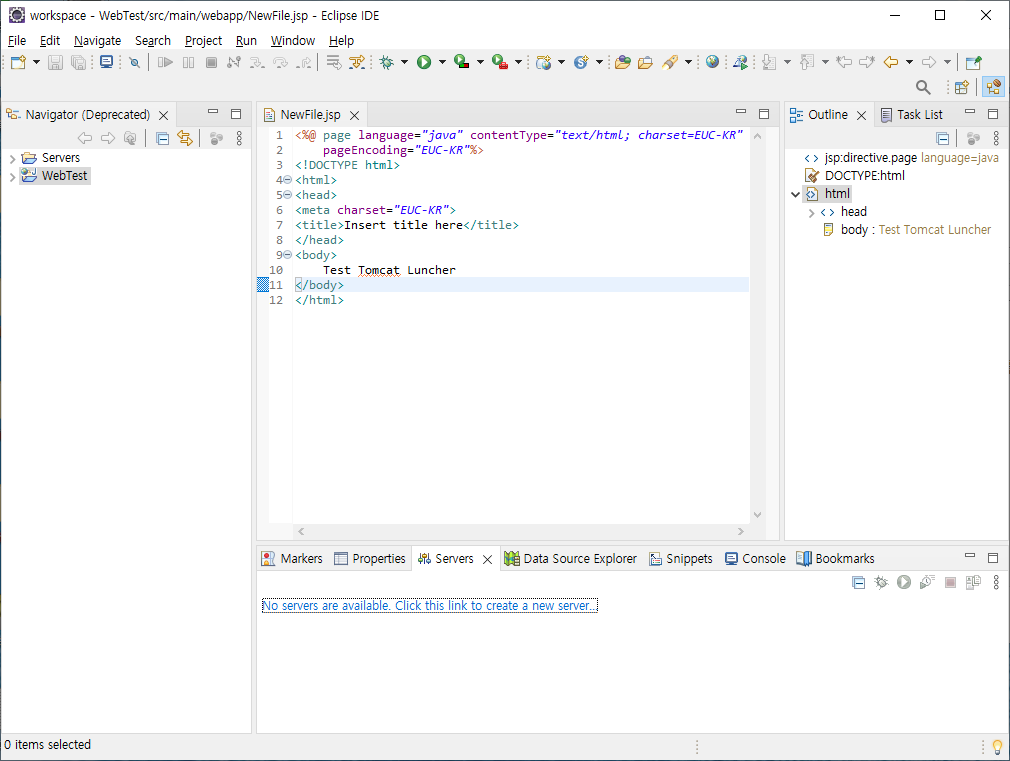 Servers 탭이 없다면 Windows → show view 를 참고합니다.
