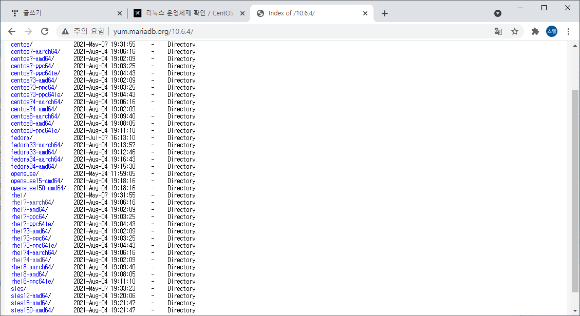 다음으로 설치 경로가 mysql 과 겹쳐서 mariadb가 mysql 로 잘못 설치 되는 경우가 존재하기 때문에