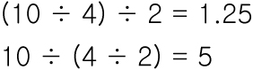 곱 과 나눔 / 합 과 차 간에는 결합법칙이 성립하지 않습니다.