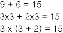 위의 예제 처럼 분배법칙은 역으로 숫자를 묶어서 사용할 때 사용할 수도 있습니다.