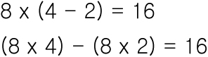 괄호 밖에있는 곱/나눔을 괄호 안에 적용한뒤 계산해도 값이 같을때 분배법칙이 성립한다 라고 합니다.